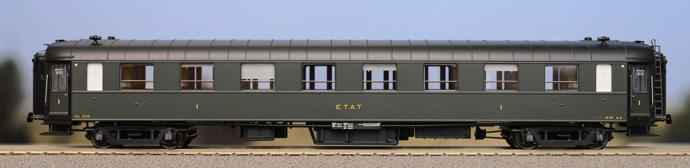 | MW 40917 | A8yfi | 542, Brun van Dyck, noir, filets jaunes, Chemins de fer du P.L.M., bogies M1 | Disponible |