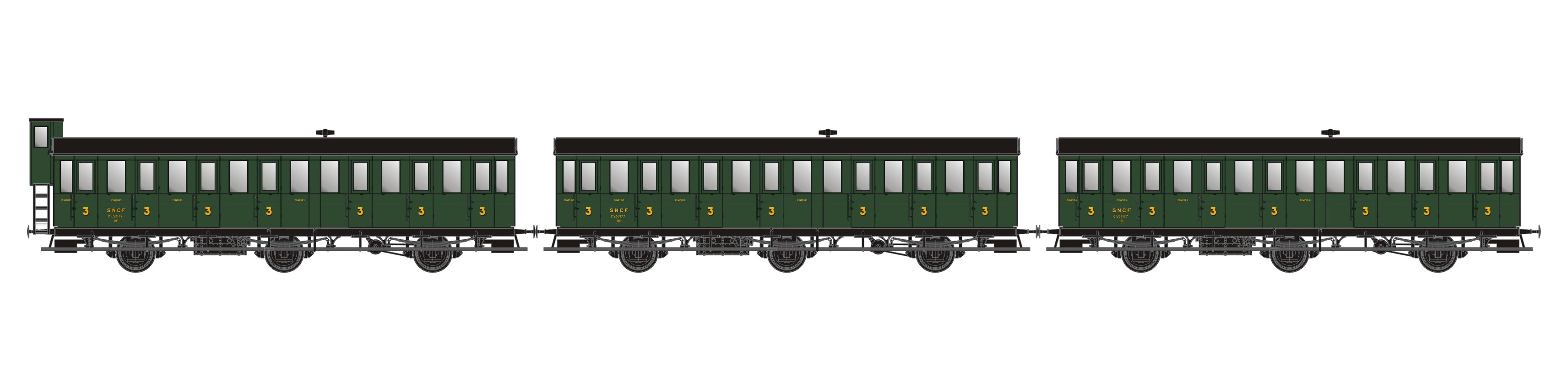 La Compagnie des chemins de fer de Paris à Lyon et à la Méditerranée a fait construire des milliers de voitures à 3 essieux jusqu'en 1924. Leur chassis était métallique, la caisse en bois.